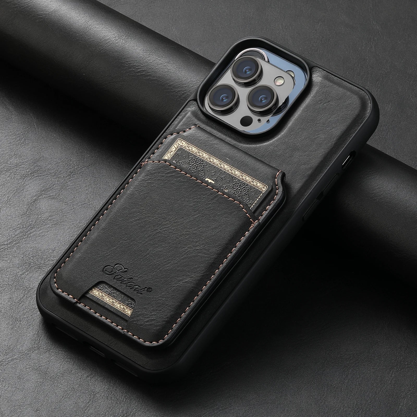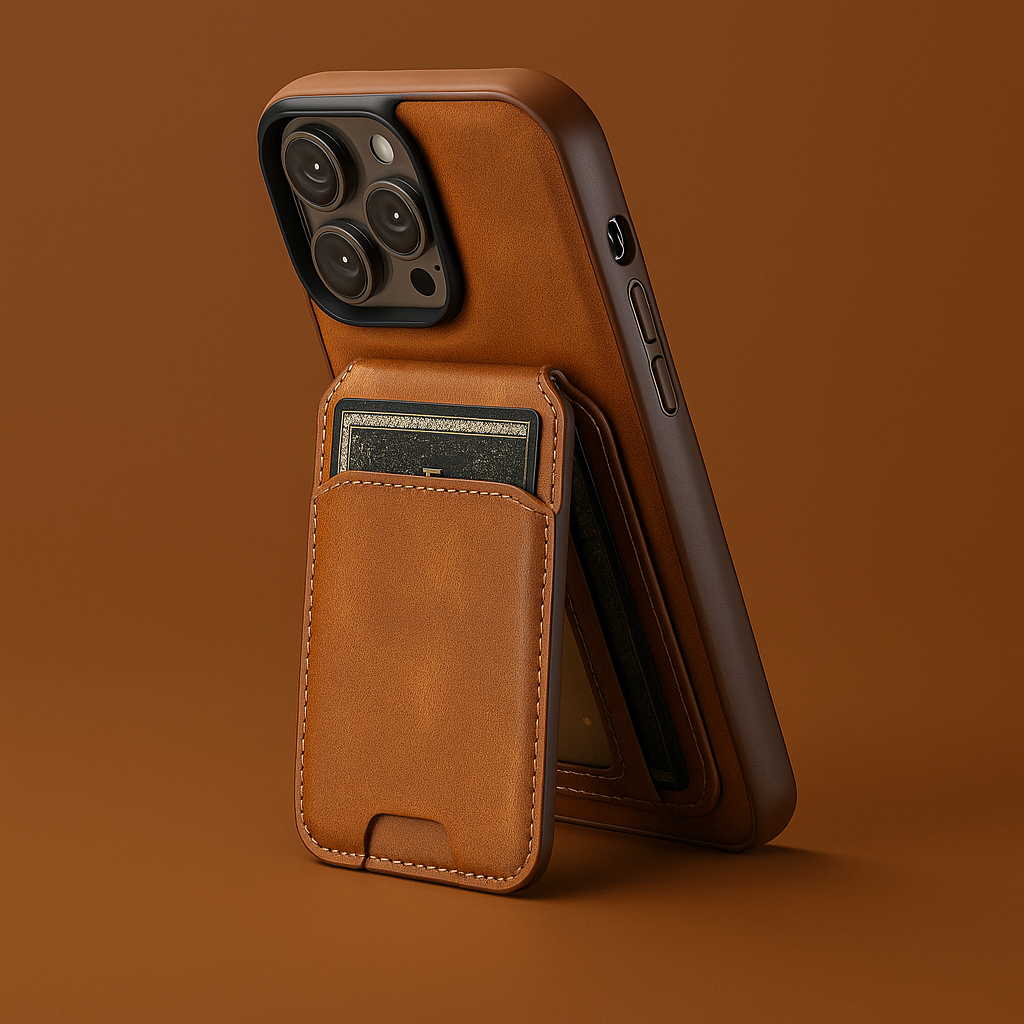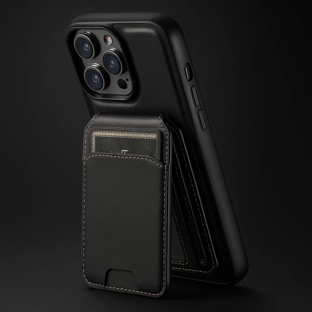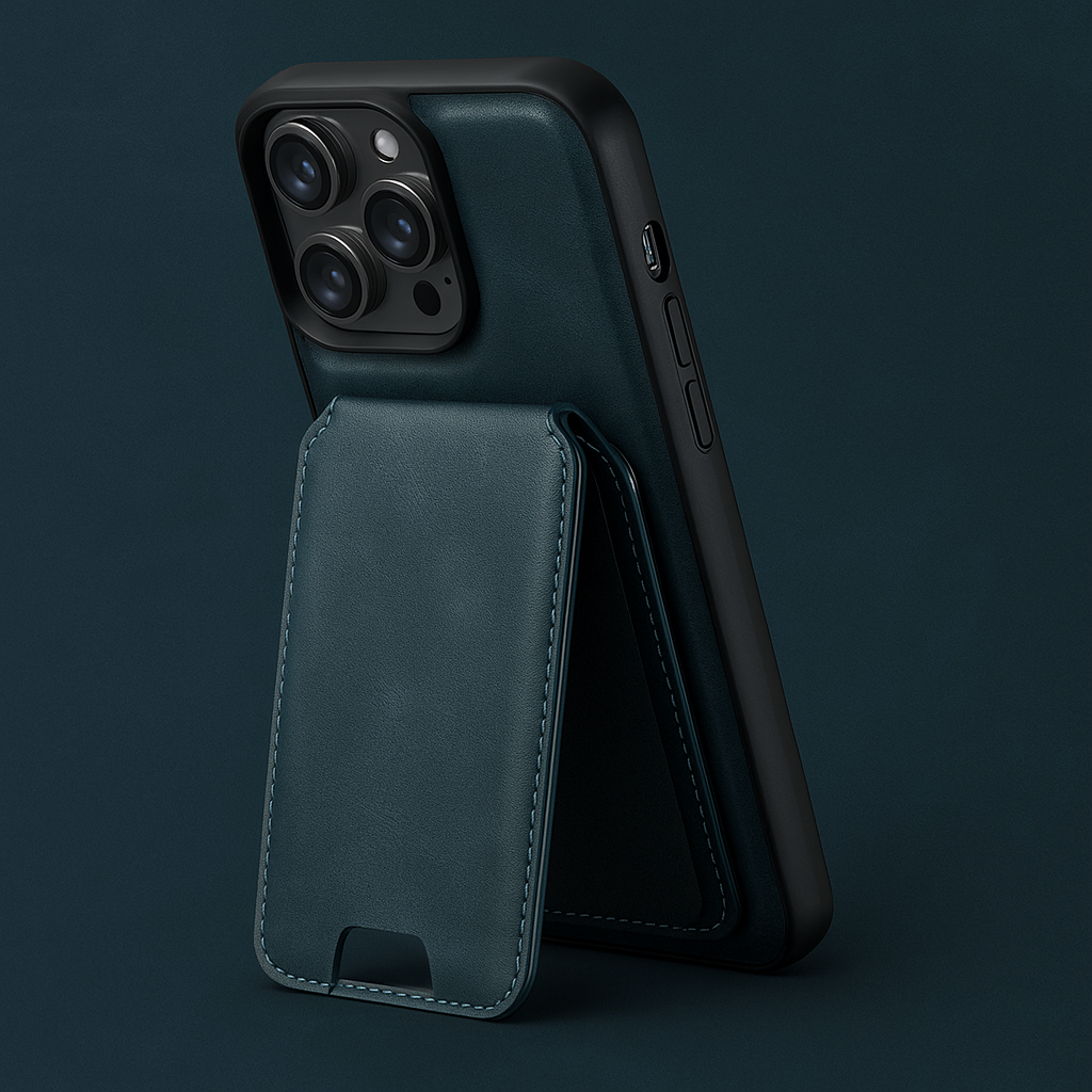 Crafted with a smooth vegan leather finish, this case combines a detachable wallet slot, built-in kickstand, and the convenience of MagSafe charging. The slim profile keeps your phone sleek, while the textured finish and precise stitching bring a refined touch to everyday use.